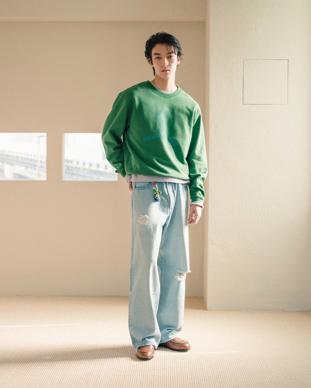 トレンドの移り変わりが激しい現代のファッション業界においても、 ブランドのチームメンバーが「本当に欲しいもの」「長く大切に着られるもの」は 何かを企画し全てのアイテムをジャパンメイドに拘って生産。市場には古着のように何十年にも渡って、 数々の人の手に渡り愛される洋服が存在するように、SCの洋服も1年限りで着なくなってしまうようなもの ではない、ずっと着られるシンプルな洋服でありながら、唯一無二で複雑な要素を 兼ね備えたデザインを提案している。